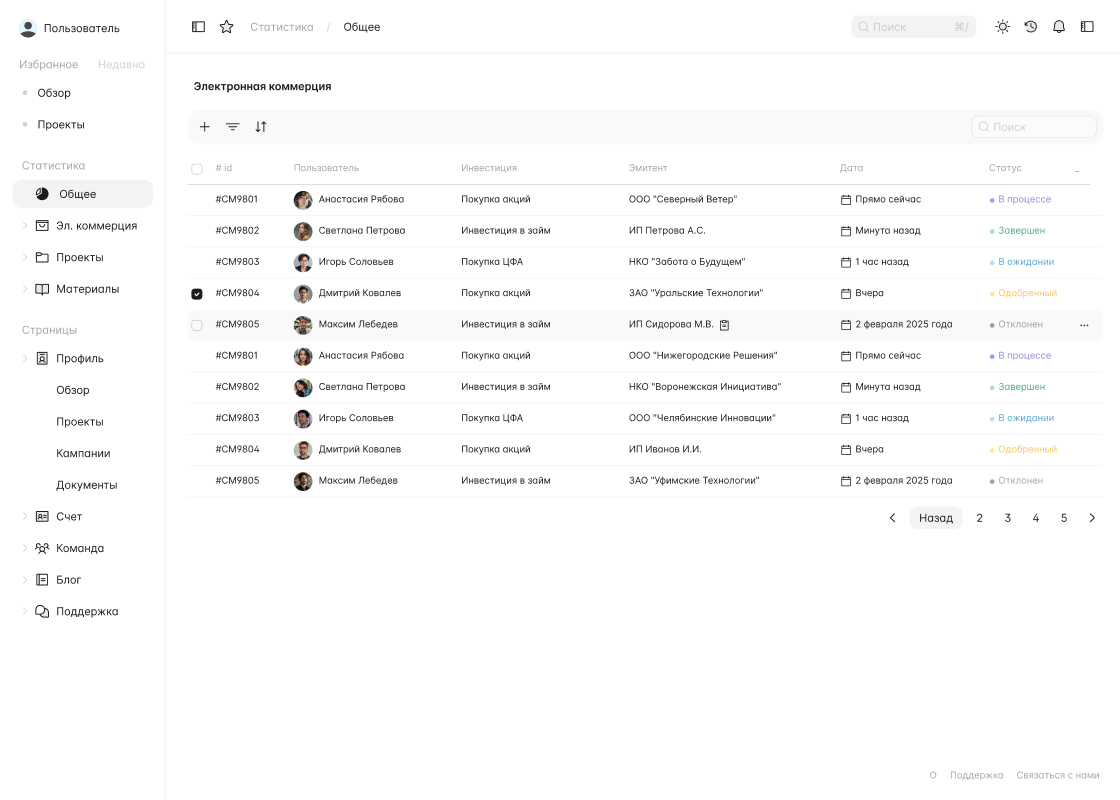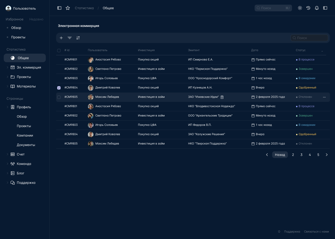 Проектируем UX/UI так, чтобы каждый пользователь мог легко ориентироваться и выполнять целевые действия. Упор делается на простоту, скорость восприятия информации и соответствие ожиданиям целевой аудитории: инвестору — удобно инвестировать, управляющему — отслеживать статистику, модератору — управлять предложениями. Интерфейсы адаптивны и готовы к расширению функционала в будущем.
